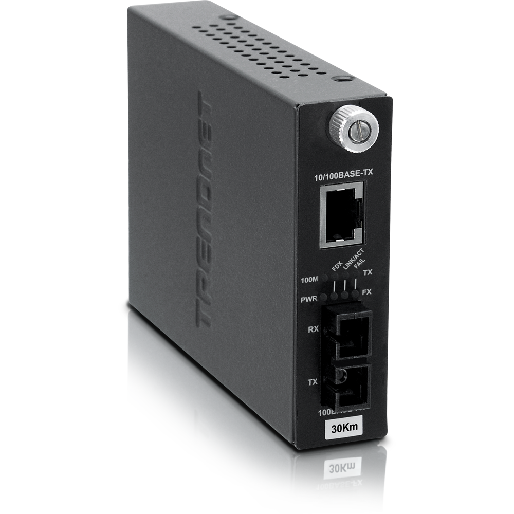 Convertidor de fibra SC monomodo de 100Base-TX a 100Base-FX